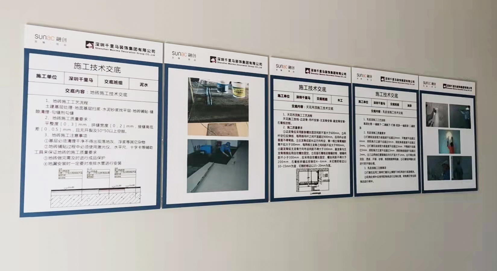 優異成績的取得,是千里馬裝飾積極發揮施工技術及項目管理上的優勢,有效應用“樣板先行”、“技術交底”等新方法的充分體現。在項目施工前,就會由相關專業技術人員向參與施工的人員進行設計、施工及專項技術交底,讓施工人員對工程特點、技術質量要求、施工方法與措施和安全等方面有一個更全面詳細的了解,以便于科學地組織施工。
