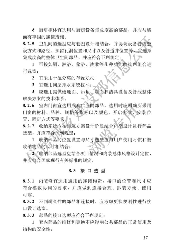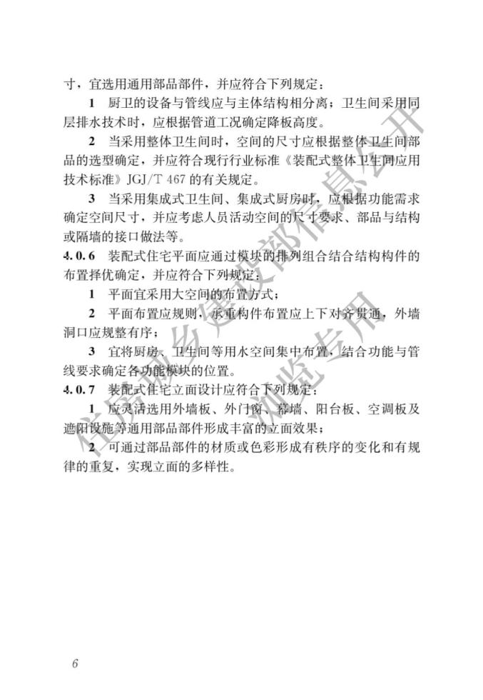 標準明確,裝配式住宅應選用標準化程度高、接口通用性強、性能優良、安裝高效、維護更換便捷的部品部件,滿足住宅安全耐久、綠色環保、健康舒適和經濟適用等性能要求。