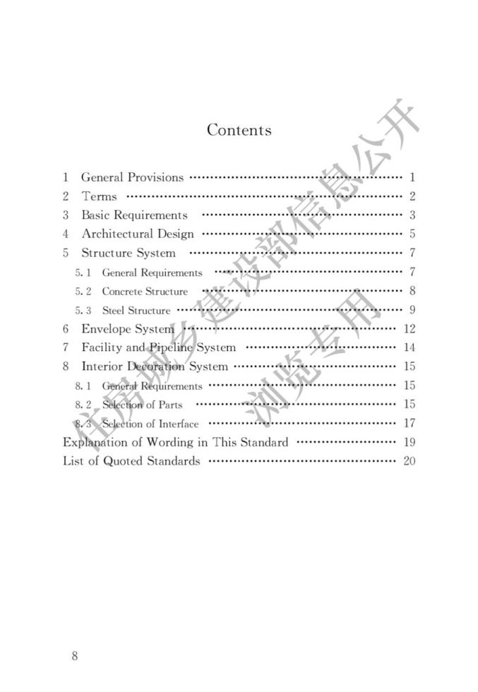 答:《標準》共分為8章。其中,“總則”和“術語”規定了《標準》的編制目的、總體原則、適用范圍和相關術語的基本概念;“基本規定”對設計選型應遵循的基本原則、設計選型的主要內容、部品部件及其接口的設計進行了深入規定;“建筑設計”給出了建筑設計的總體原則,提出模塊及模塊組合的設計方法,提出了平立面標準化和多樣化設計的協調方法;“結構系統”“外圍護系統”“設備與管線系統”和“內裝修系統”從裝配式建筑四大系統的角度分別結合其特征明確了體系、性能指標或部品部件的具體選型原則。