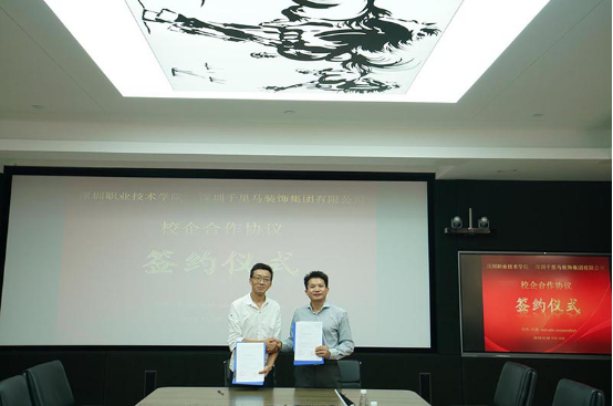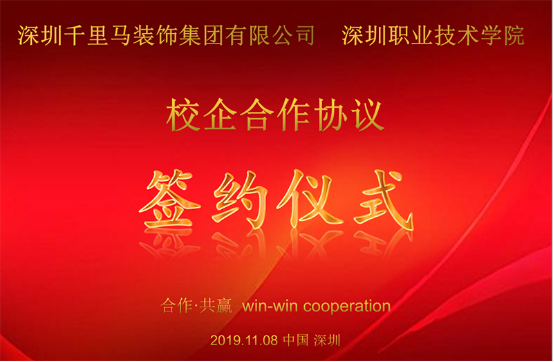 2019年11月8日,深圳千里馬裝飾集團有限公司(簡稱深圳千里馬裝飾集團)與深圳職業(yè)技術(shù)學(xué)院(簡稱深職院)校企合作簽約儀式在深圳千里馬裝飾集團總部舉行。
