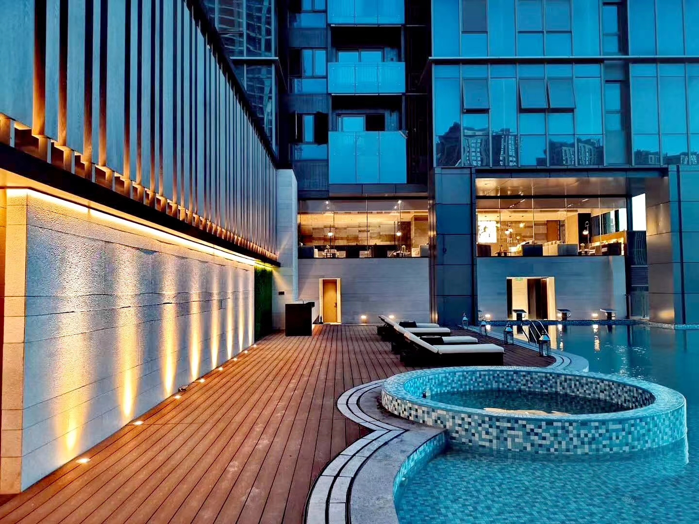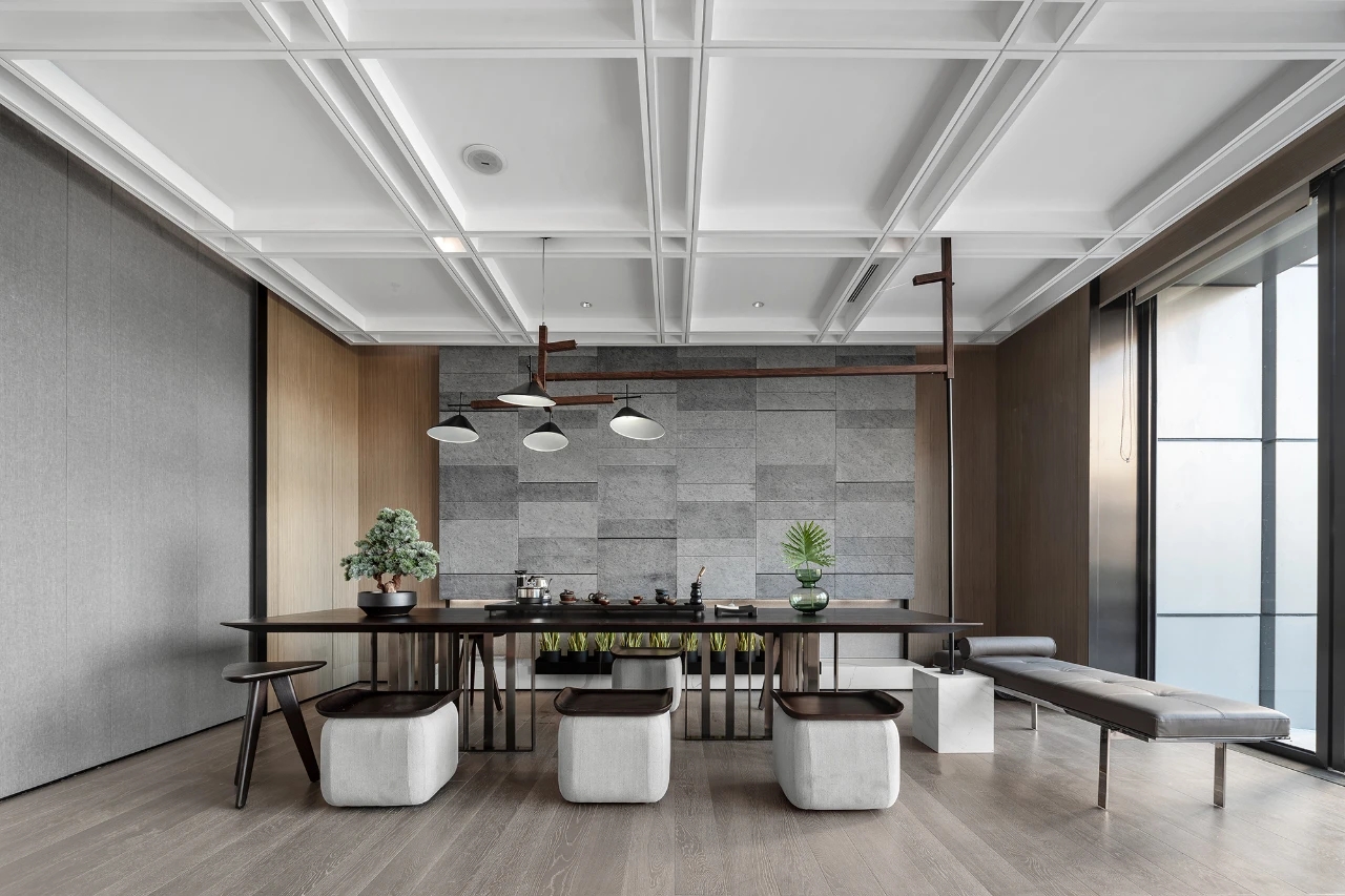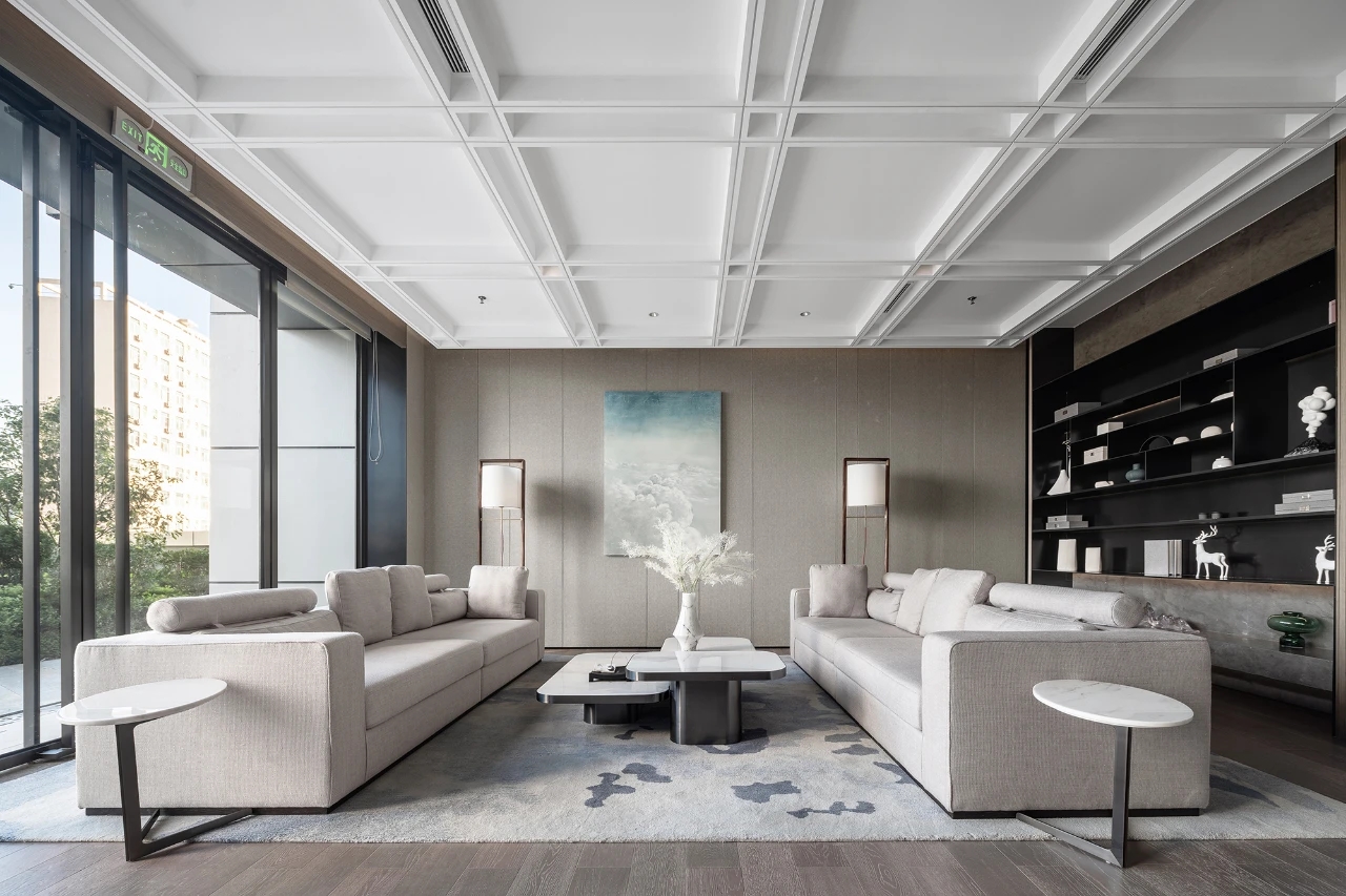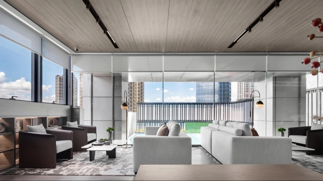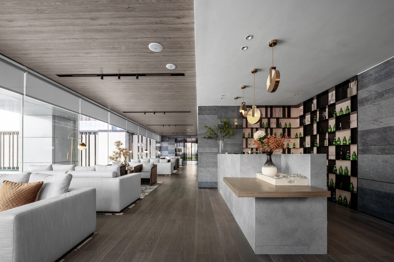 建筑面積1800㎡,我司負責售樓部的影音室、約談區、接待區、沙盤區,會所的茶藝室、瑜伽室、閱讀室、泳池、更衣室。該項目難點在于工期短、標準高、任務重。施工過程需要協調大量工種,24小時不間斷穿插施工,對于工期、質量、安全保證方面是一個巨大的考驗,且受新冠疫情影響,大量工廠還未開工,而項目所使用的定制異形不銹鋼屏風、不銹鋼柜子、異形鋁板、進口潔具、進口馬賽克等加工周期長且工藝復雜的材料,對采購與運輸工作帶來巨大挑戰。